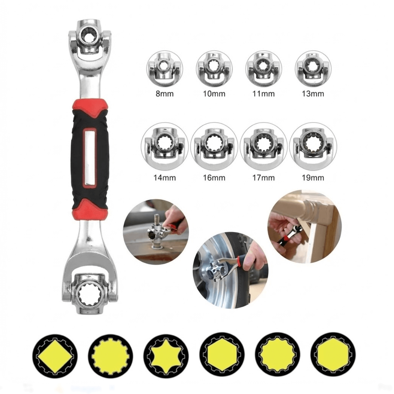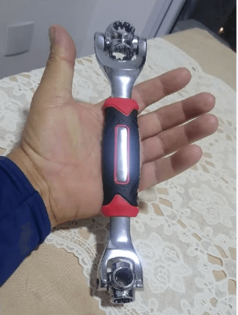 No es solo una llave, es un taller completo en la palma de tu mano. Gracias a su cabezal giratorio de 360°, cambias de medida en 1 segundo.